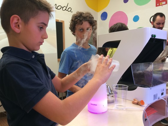- Centré sur les langages de l’alimentation, le Food Shuttle place les enfants au cœur de sa mission, en révélant son contenu technologique entre jeux de lumières, de sons et de couleurs. Le projet prévoit l’utilisation d’outils comme des casques de réalité virtuelle, des imprimantes laser et 3D, des microscopes numériques, des distillateurs, des extracteurs, des diffuseurs de parfums, des machines de thermoformage et des machines sous vide.