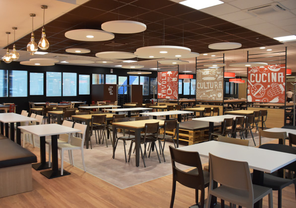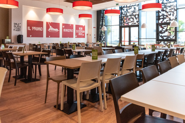 Al nuovo locale RITA a Corte Tegge, si aggiunge il restyling dei due ristoranti RITA di via Guicciardi a Reggio Emilia e del centro commerciale Vittoria a Castellarano, che sono stati completamenti rinnovati seguendo il nuovo stile del format di CIRFOOD. La zona di distribuzione è stata completamente adeguata alla nuova offerta di RITA, i percorsi all’interno dei locali sono stati ottimizzati per un migliore uso dello spazio e una migliore fruizione da parte dei clienti. Anche l’illuminazione, come in tutti i locali del ristorante self-service, è stata migliorata con l’installazione di lampade a LED che migliorano la luce e permettono un maggiore risparmio energetico.