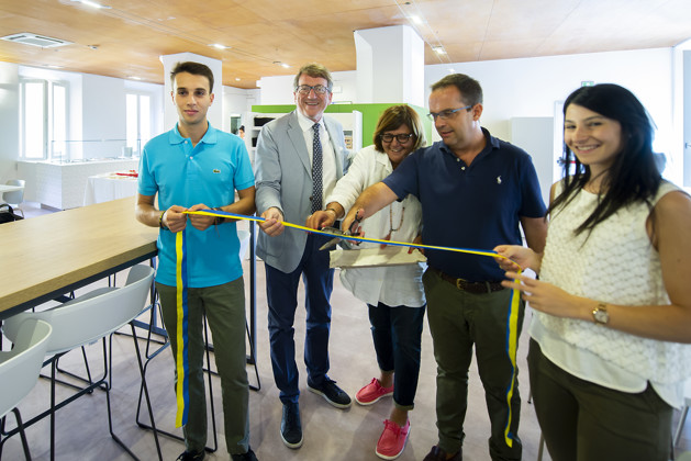 Taglio del nastro alla presenza del sindaco di Modena Gian Carlo Muzzarelli per la nuova sala ristorazione, completamente rinnovata.