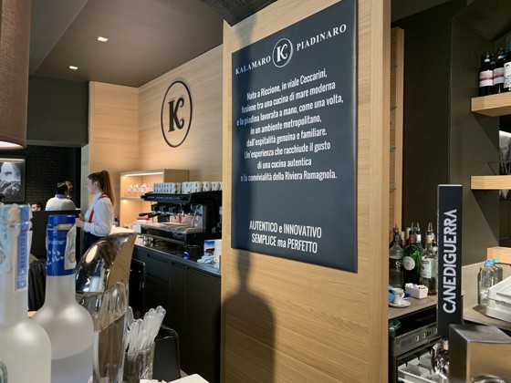 Questa particolare combinazione, evocata anche nel nome del brand, rappresenta la caratteristica distintiva che ha reso inconfondibile Kalamaro Piadinaro. Qui, infatti, si ha la possibilità di assaggiare la classica piadina romagnola, che prevede l’utilizzo dello strutto ma, la particolare lavorazione artigianale adoperata in Kalamaro Piadinaro, la rende sfogliata quindi, più leggera e friabile. In riposta ai nuovi trend alimentari, sono anche servibili diversi impasti senza strutto come grano arso, farro, multicereali e grano spezzato.