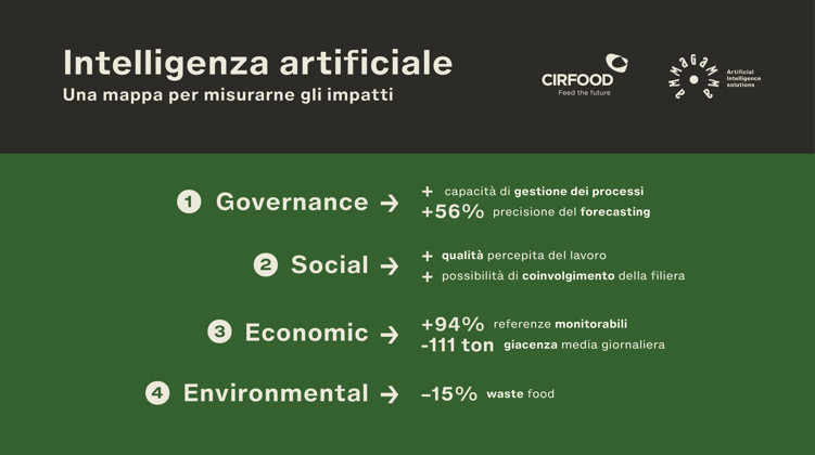 “La collaborazione con Ammagamma ci ha consentito di valutare l’impatto reale dell’intelligenza artificiale sulla nostra struttura organizzativa e di comprendere le potenzialità di miglioramento dei nostri processi. Oltre a fornire una panoramica sulle performance ambientali ed economiche, il progetto ci ha permesso di identificare le opportunità di crescita per le nostre persone e di valorizzazione delle loro competenze” ha commentato Massimiliano Merenda, Procurement & Supply Chain Executive Director CIRFOOD.