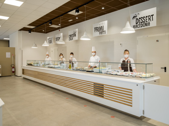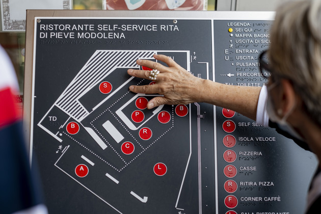 Il locale prevede una serie di soluzioni, pensate direttamente con le persone, per le persone, attori protagonisti della co-progettazione, grazie alla realizzazione di alcuni focus group organizzati all’interno dei nostri ristoranti self service RITA. Nel dettaglio sarà possibile trovare un banco self service che agevola il passaggio delle pietanze a diverse altezze, spazi ampi, mappe tattili per facilitare la comunicazione e la fruizione degli ambienti, un sistema di chiamata all’ingresso (per attendere l’assistenza di un addetto in caso di necessità) e un’area calma all’interno della sala ristoro, nella quale è richiesto ai clienti di ridurre al minimo i rumori, al fine di preservare il comfort acustico dell’ambiente. Inoltre, stoviglie ergonomiche che favoriscano la fruizione della pausa pranzo di tutti i clienti.